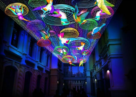 七彩鸟窝的妙趣横生,这有趣的场景不经让人拍手称快,徜徉旅步在下方,感受绚烂灯光的变化,体验那趣味鲜活的造型。