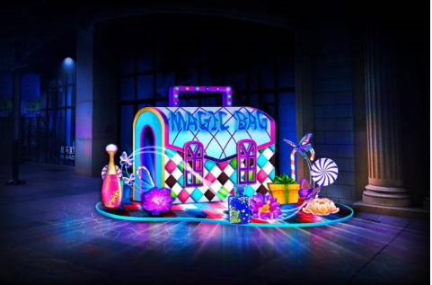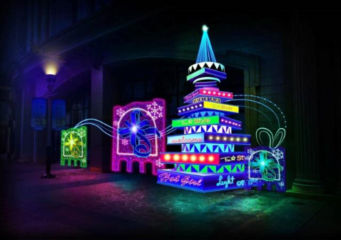 灯组以圣诞树作为设计主题,用礼物盒组合营造出时尚氛围,令人眼前一亮。